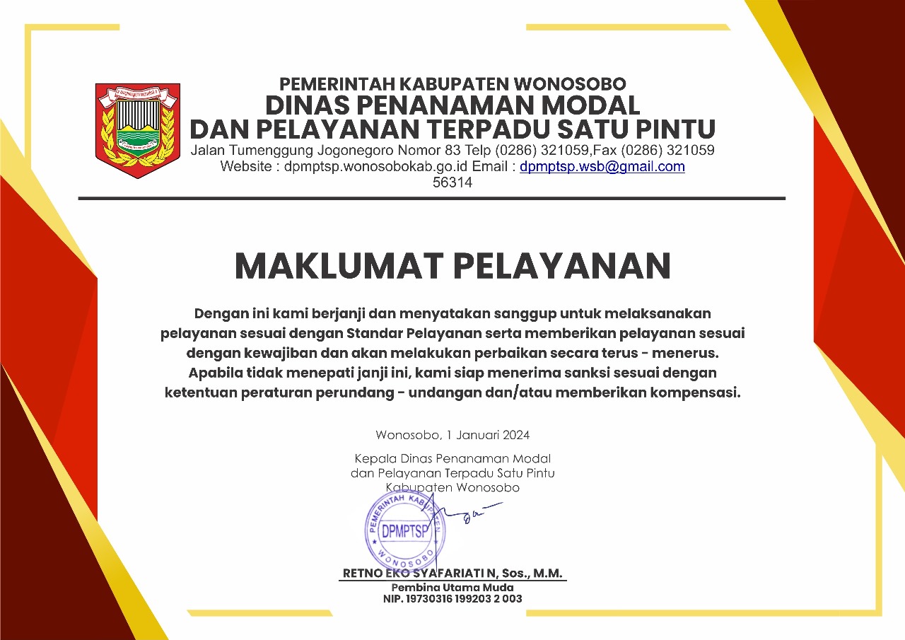 Izin Operasional Klinik Pratama Non BLUD milik pemerintah di wilayah Kabupaten Wonosobo